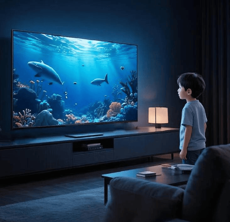 它还支持AI画质调校和超解像技术,可以让低分辨率的片源变得更清晰、细节更丰富,看剧和游戏都很舒服。AI暗场细节增强还能让暗部纹理更明显,避免大片的黑暗部分过于死黑,让整个画面更有层次感。整体来说,这款电视的屏幕显示效果很自然、真实,护眼技术也不错,长时间看也不容易疲劳,是一款技术很全面的智能大屏。